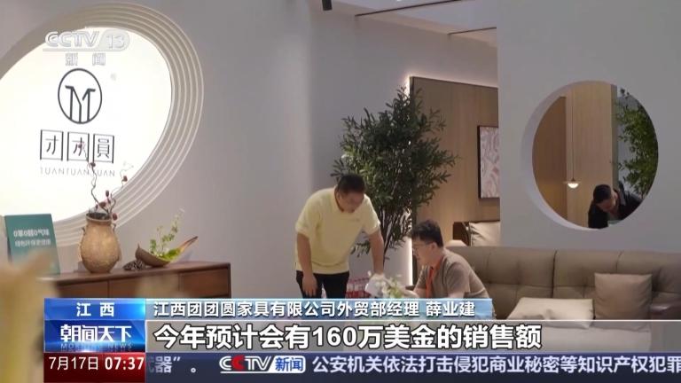 江西团团圆家具有限公司外贸部经理 薛业建:家具在7月到11月是一个销售旺季,今年预计会有160万美元的销售额。