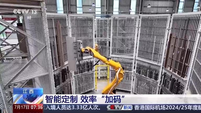 总台央视记者 张琪:分拣机械臂正将加工好的木板快速存放在书本架上,这一个单元的书架可以存放480片部件板,打造10个柜子,够一个家庭使用。