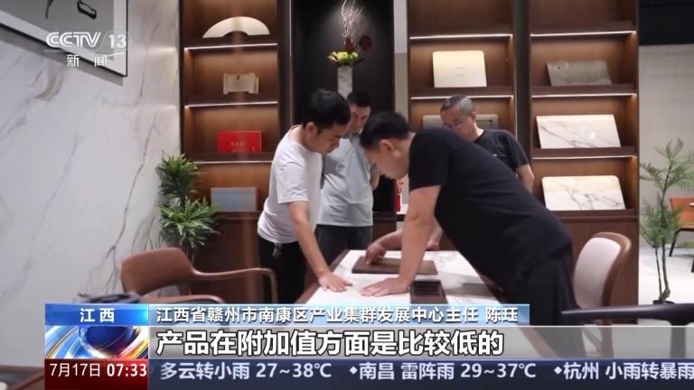 江西省赣州市南康区产业集群发展中心主任 陈珏:相较于生产的其他环节,企业对于原创设计这方面的投入非常少,产品在附加值方面是比较低的。