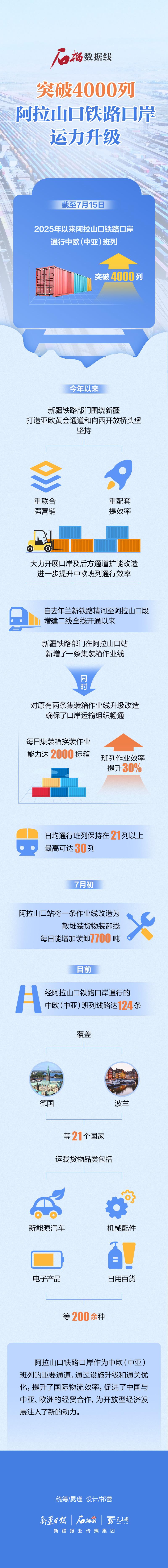 截至7月15日,2025年以来阿拉山口铁路口岸通行中欧(中亚)班列突破4000列。