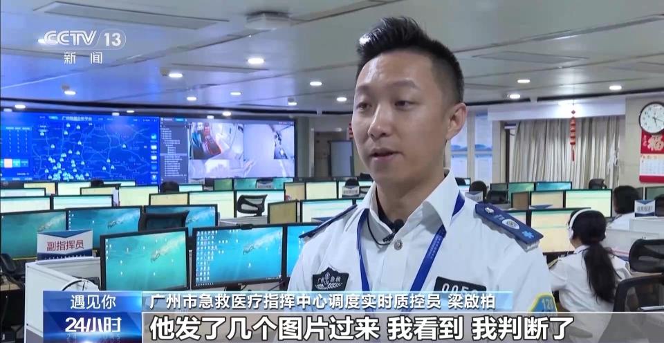广州市急救医疗指挥中心调度实时质控员 梁啟柏:他发了几个图片过来,我初步判断应该是外伤引起的不舒服,我们就尽快跟医院沟通,安抚了他的情绪,避免波动,告诉他,我们的救护车已经在寻找他的路上了。