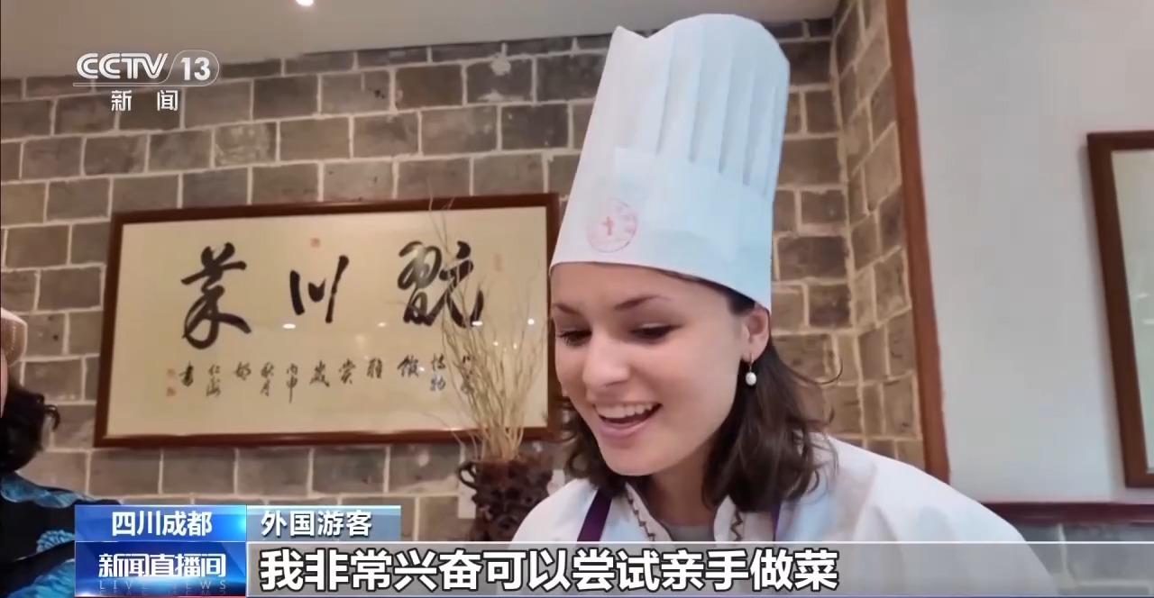 外国游客:我非常兴奋可以尝试亲手做菜,这看起来很不错,值得等待,这是我第一次做中国菜,闻起来特别香,我已经迫不及待想尝尝了。
