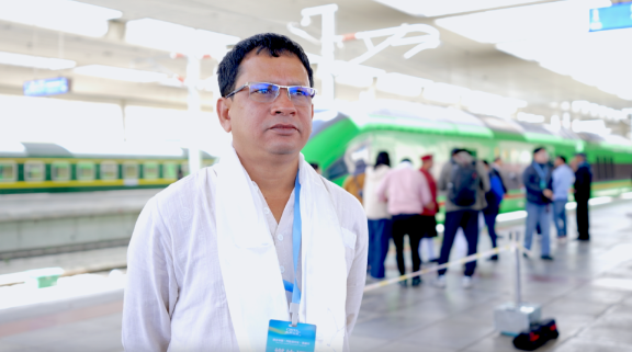 在从拉萨到日喀则的复兴号动车组列车上,印度印地新闻台总经理兼总编辑阿图尔·阿格拉瓦尔与列车员们载歌载舞,非常愉快地体验了这条穿越青藏高原的现代化铁路线。他说:“中国正飞速发展,大力推动创新,涌现出大批高新技术成果,世界各国都在向中国学习。”