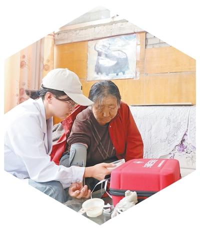 许大爷已逾70岁,见到马学梅,他撑着手从炕上下来,热情地招呼:“闺女,你天天忙着,还老要麻烦你。”马学梅一边询问最近吃药情况,一边利索地为他绑上血压带。不久前的一个深夜,许大爷突发头疼,马学梅二话没说,徒步往返3公里多,上门为他开药。