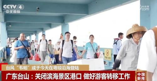 19日上午10点多,在广东台山市川岛镇山咀港码头,客运船正加班加点往返转运,将游客分批送上岸。截至19日中午12点30分停航前,当地已完成8000多名岛上游客的转移工作。