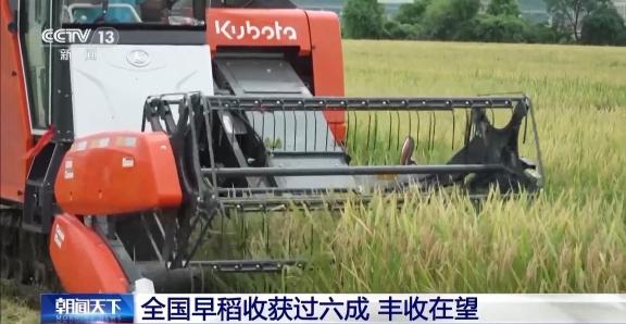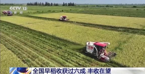 目前,全国早稻收获进入高峰期,已过六成,进度快于上年,丰收在望。