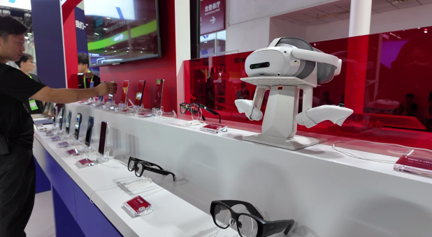 在第三届链博会上,高通公司展示的AI眼镜等智能终端产品。(央广财经记者黄昂瑾 摄)