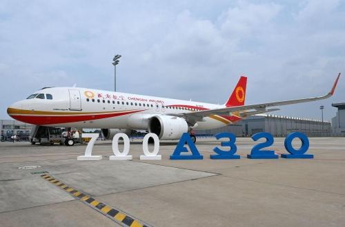 这是2024年7月8日拍摄的交付给成都航空的飞机。当日,位于天津的空中客车A320系列飞机亚洲总装线交付第700架A320系列飞机。新华社记者 李然 摄