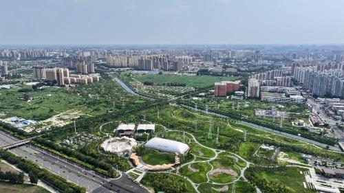保定市环城水系如玉带般环绕城区。(刘琦 摄)
