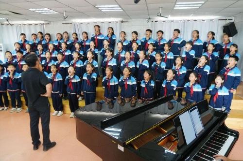 马兰花儿童声合唱团在音乐教室里进行演唱训练。新华社记者杜一方 摄