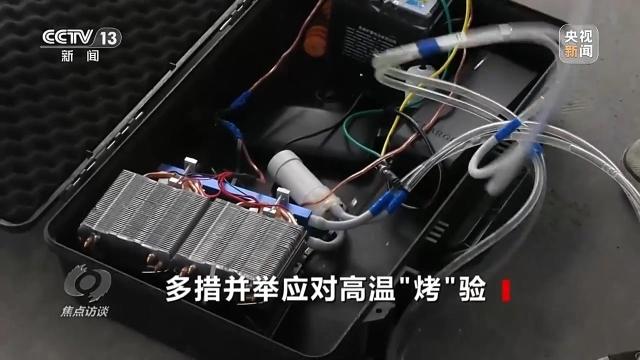 这件黑色背心是一套不足1公斤的智能降温装备,是国网襄阳供电公司专为高温作业研发的“黑科技”。背心模拟空调降温的原理,内置循环管道,配备小型电池与压缩机,通过水在管道中的循环吸热,给绝缘服装上一个“小空调”,持续降温。以往夏天带电作业,厚重的绝缘服里高达50℃,工人作业半小时就浑身湿透,而在“黑科技”的加持下,唐师傅感觉良好。