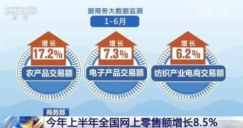 央视网消息:记者7月21日从商务部了解到,今年1—6月,全国网上零售额增长8.5%。