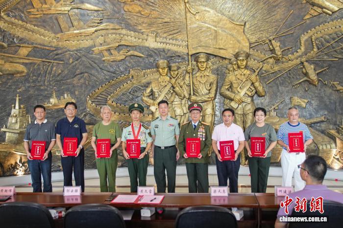 图为参加捐赠仪式的领导与老兵代表合影。陈冠言 摄