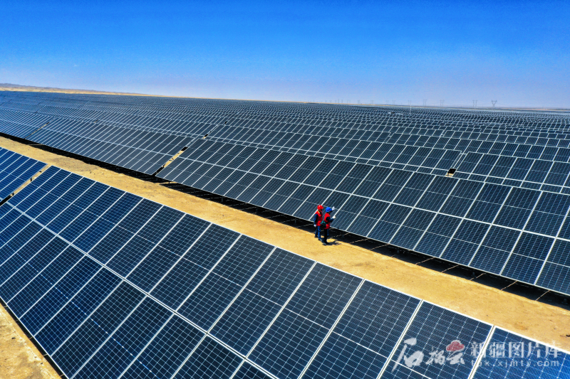 国网新疆电力有限公司喀什供电公司工作人员走访莎车县的一个光伏产业园(资料图)。王康 摄