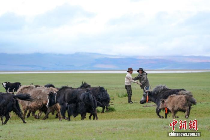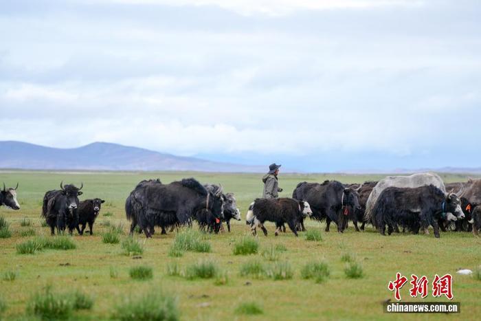 7月22日,在西藏阿里地区普兰县霍尔乡,牧民放牧牦牛。为实现更大的经济效益,霍尔乡近年来探索建立牦牛养殖专业合作社,按当地自然条件合理分配牦牛放牧地点,并将牛奶进行加工销售,2023年该合作社的年总收入达到60余万元人民币,带动牧民人均增收2万余元人民币。中新社记者 张祥毅 摄