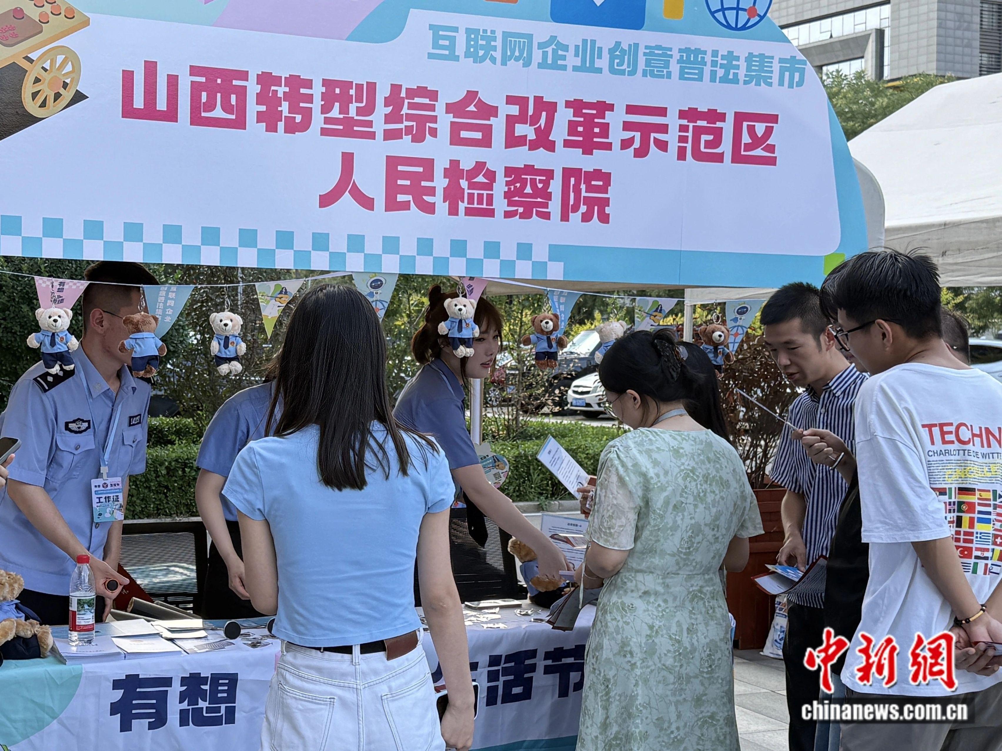 7月22日,2025年“全国网络普法行·山西站”活动在山西太原启动。当日下午,采访团一行来到山西转型综合改革示范区,彼时,一场别开生面的“有想‘法’生活节·互联网企业创意普法集市”活动正在举行。