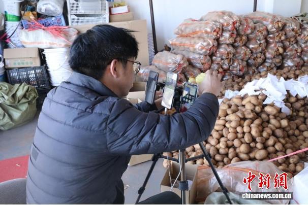 图为任强通过直播售卖马铃薯。 蔡青春 摄