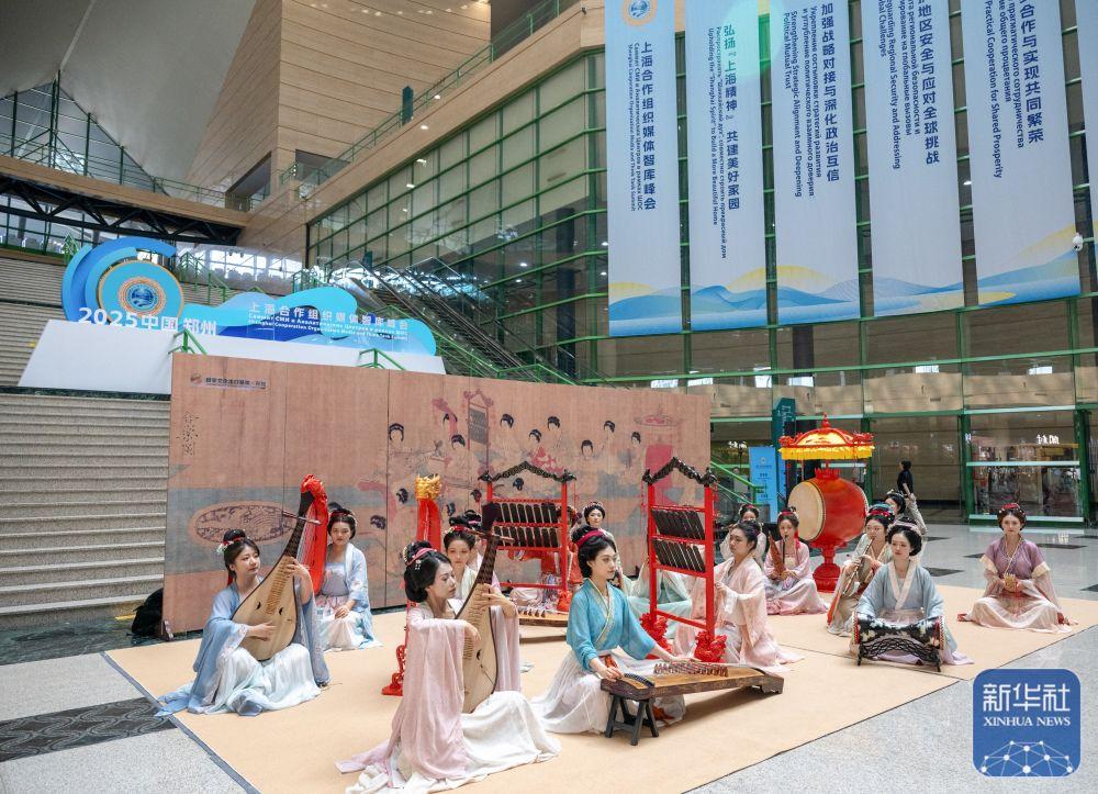 ↑ 这是在上海合作组织媒体智库峰会会场进行的《合乐图》民族乐器复刻展演(7月24日摄)。新华社记者 胡竞文 摄