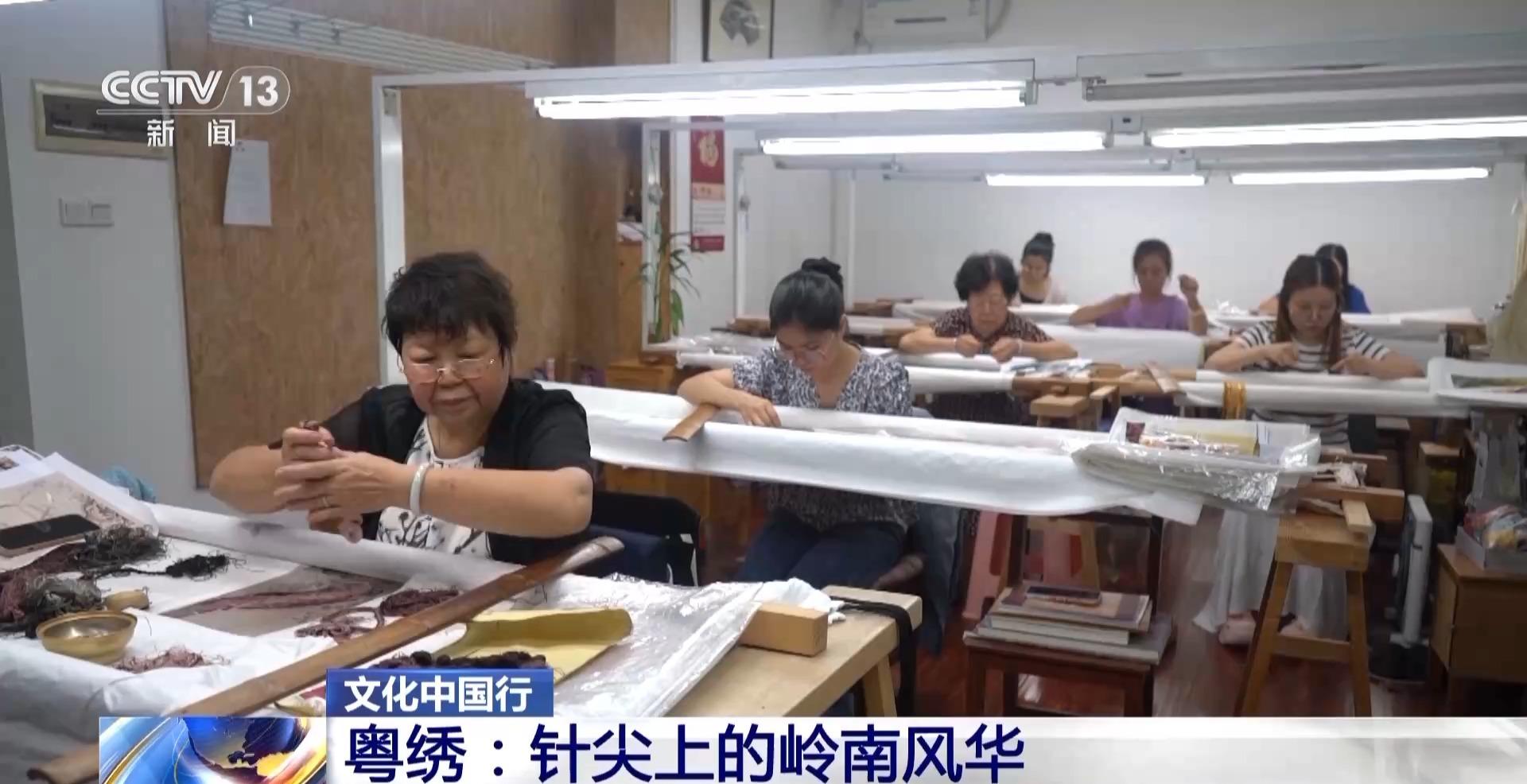 在广州市的粤绣传承基地——广州绣品工艺厂,一幅幅绣品佳作逐一陈列;其中不少绣品原画均出自当今岭南画派画家的画作。