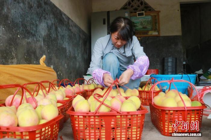 中新网宁德7月25日电 夏日清晨,薄雾未散,位于福建省宁德福鼎市前岐镇柯湾村的桃园里,果农陈兴进摘下一筐筐泛红的水蜜桃。采摘正忙时,手机铃响,柯湾村党支部书记陈斌的嗓音传来:“老陈,后取村那家咖啡屋要推‘鲜果特调’,你的桃子是头牌。”