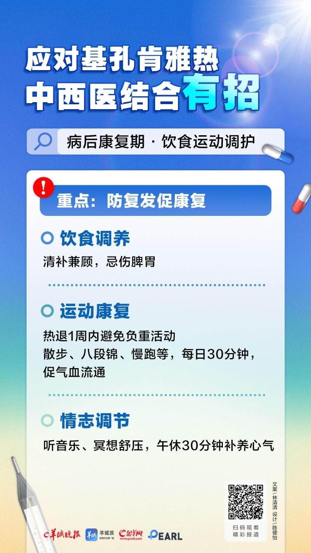 此阶段重点是防复发促康复。饮食调养方面,注意清补兼顾,忌伤脾胃;运动康复要注意,热退1周内避免负重活动。可进行散步、八段锦、跑步等,每日30分钟,促进气血流通。