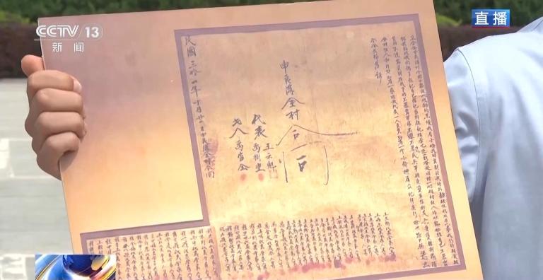 1942年,日军频繁扫荡太行抗日根据地,敌后抗战进入了极度艰难的阶段,在这样的背景下,申良沟的村民代表聚到了一起签下了这份合同,合同中写道,“能牺牲生命,不暴露军队、不暴露资财”“宁死不当汉奸”,最终全村42户村民代表都在这份合同上按下了红指印。这张薄薄的纸片,承载着抗日军民鱼水情深的情感和与敌人斗争到底的信念。