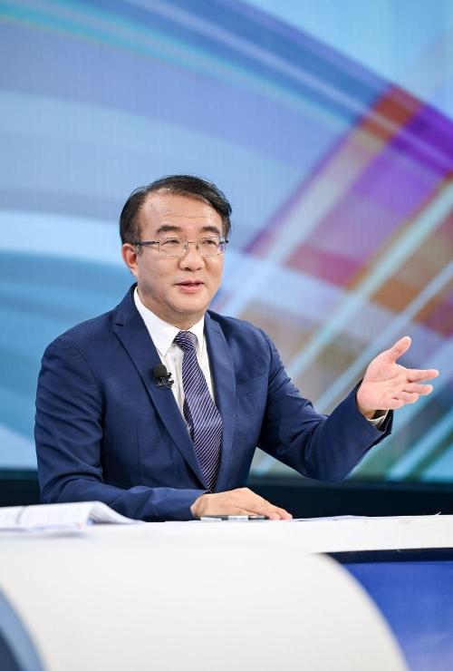 科技部七司副司长秦浩源在第二十期“中国经济圆桌会”大型全媒体访谈节目录制现场发言。新华社记者 陈晔华 摄