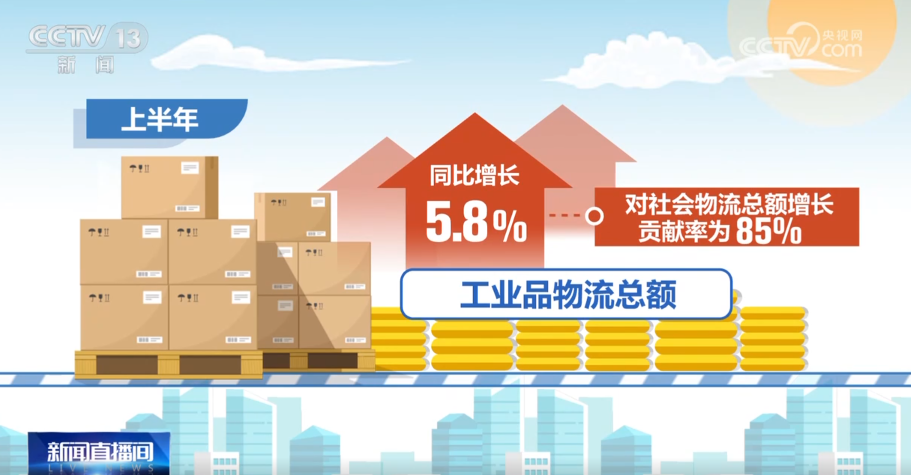 上半年,工业品物流总额同比增长5.8%,对社会物流总额增长的贡献率为85%,为工业经济稳定和产业链、供应链畅通提供了坚实保障。随着数字经济与实体经济深度融合,新兴产业物流需求展现出强劲增长动能。装备制造业物流需求同比增长10.9%,高技术制造业物流需求同比增长9.7%,成为拉动物流需求的重要增长点。3D打印设备、工业机器人产品生产相关的物流实物量同比增长均超过20%。