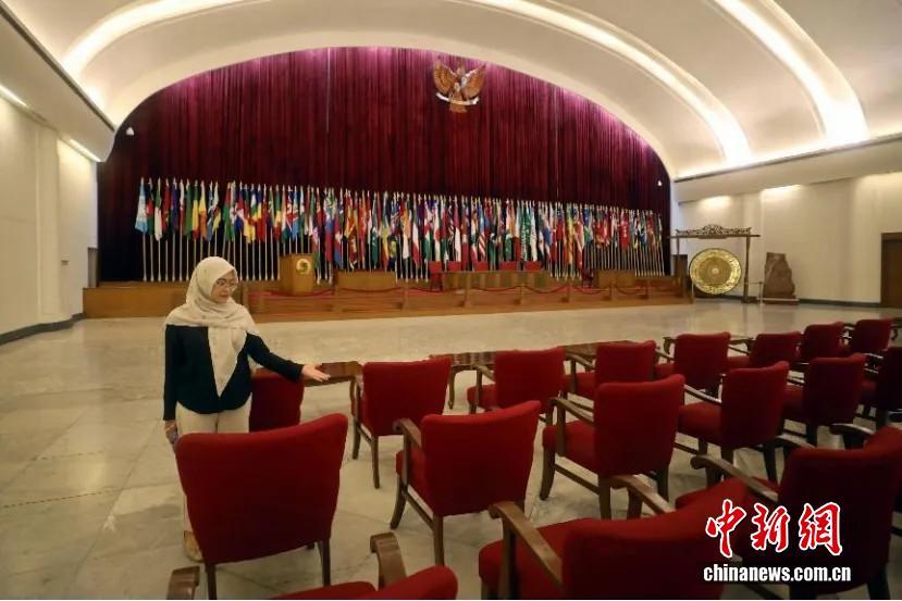 当地时间2025年3月18日,在万隆亚非会议纪念博物馆内,工作人员展示中国代表团在1955年万隆会议上的座席区域。 中新社记者 李志全 摄