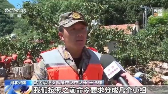 武警承德支队某中队中队长王飞祥:我们按照之前命令要求分成几个小组,抢救重要的物资,以及帮助老百姓分发重要的这些食物和水。