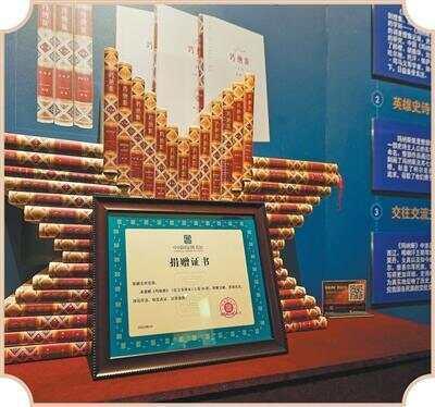 克孜勒苏柯尔克孜自治州博物馆展示的《玛纳斯》(汉文全译本)。新华社记者 徐宏岩摄