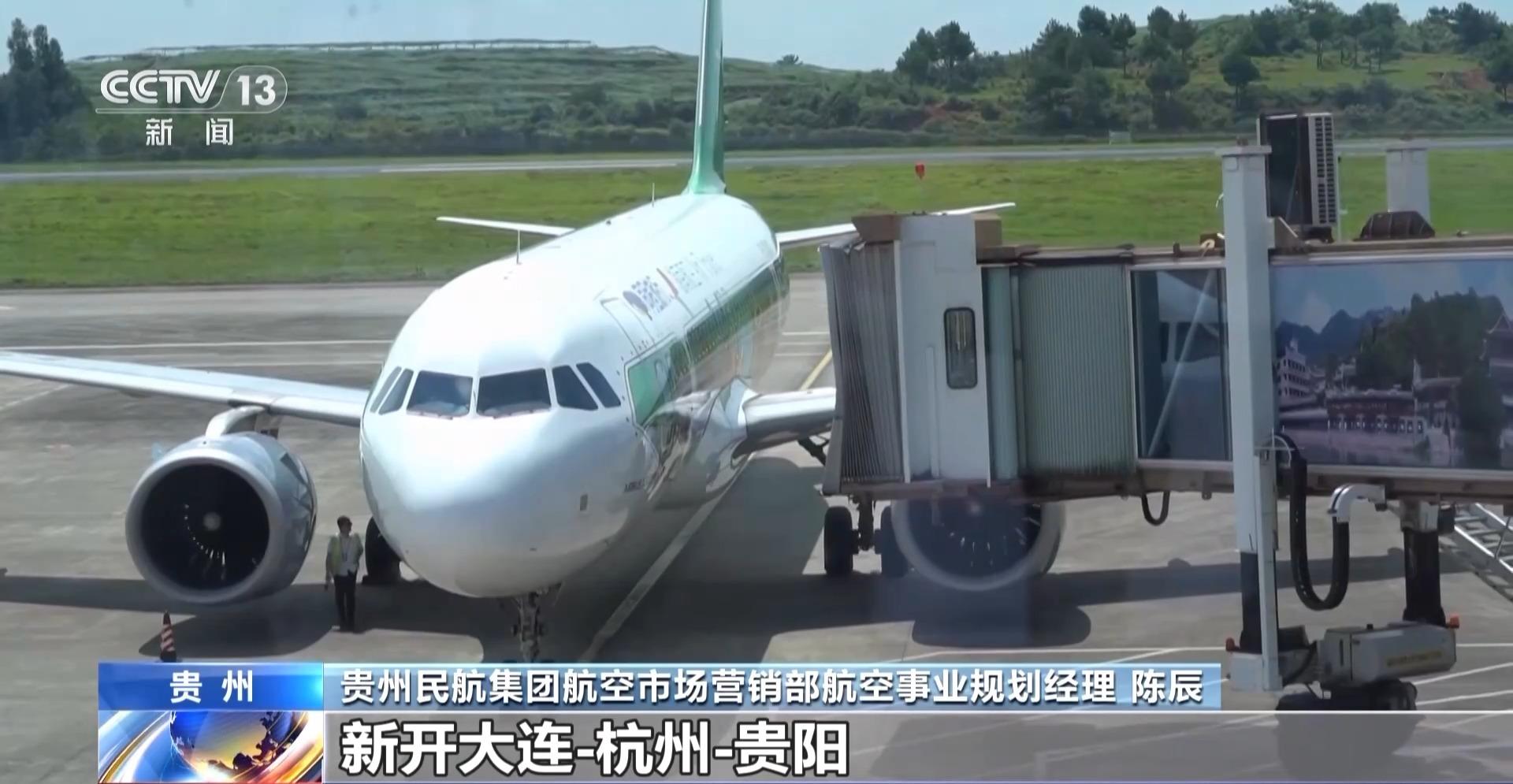 贵州民航集团航空市场营销部航空事业规划经理 陈辰:针对暑期旅游旺季,联合多家航空公司,新开大连-杭州-贵阳、郑州-达州-贵阳、沈阳-贵阳等航线,其中大连-杭州-贵阳航线暑运期间客座率超90%。