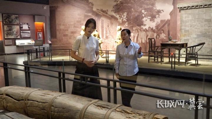 清苑区冉庄地道战纪念馆讲解员介绍榆木大炮。长城网·冀云客户端记者 史博佳 摄