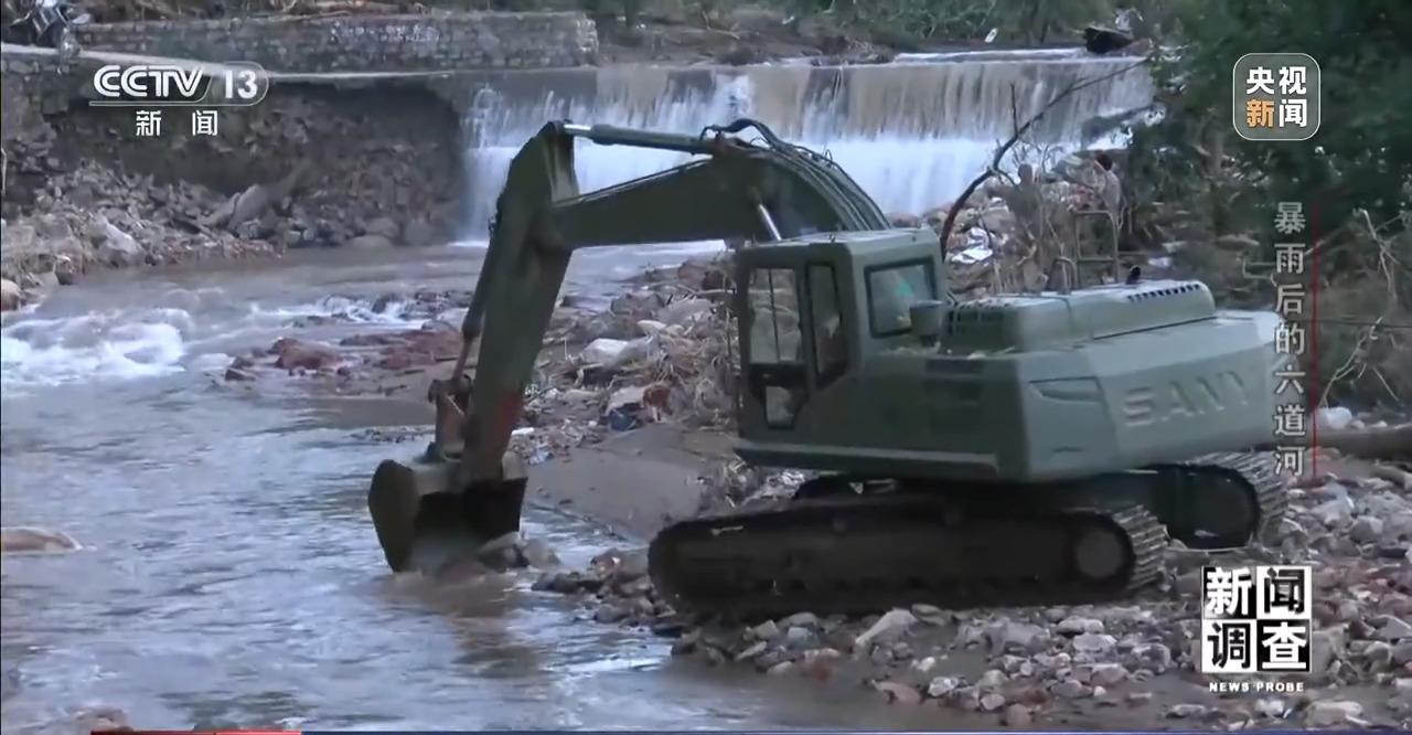 与此同时的五道河村,武警官兵也在驾驶挖掘机抢通道路,帮助村民清除自己无法清除的山石。