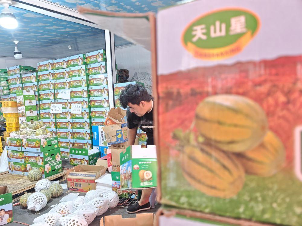 7月29日,新疆一家水果商户在打包老汉瓜。新华社记者苟立锋 摄