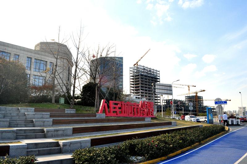 △上海街头“人民城市人民建,人民城市为人民”的立体景观字。