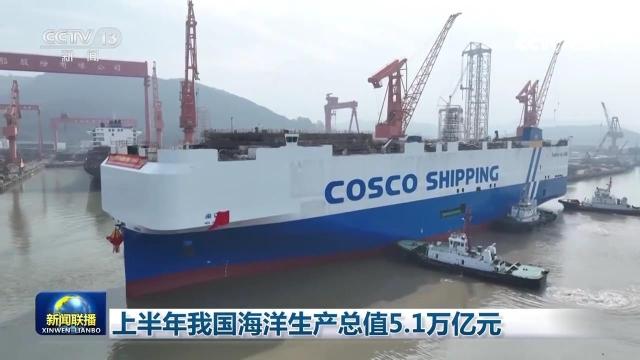 央视网消息(新闻联播):记者从自然资源部了解到,上半年,我国海洋经济稳中向好,初步核算,海洋生产总值5.1万亿元,同比增长5.8%。