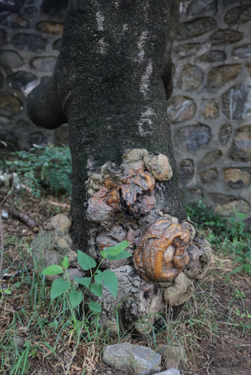幸而,2020年,守护之手伸出。新密市林业局汇集省市两级资金,聘请京豫专家,以科学匠心为古树注入生机。他们采用“框景”理念,用做旧的钢制方框在树前构筑巨型“画框”,将形如虬龙的古树主体巧妙纳入画框之中。由方框延伸出的支架,精准而隐蔽地承托起古树几根无处着力的主干。树洞被精心修复,腐朽处清创消毒、打磨后涂上桐油,如今看来竟似被人“盘”出了温润包浆。新密市林业局自然保护地事务中心主任陈现伟介绍,他们还在根系周围的土壤中埋设了透气孔,改善根系呼吸,也便于通过这些孔洞为根系施肥施药。
