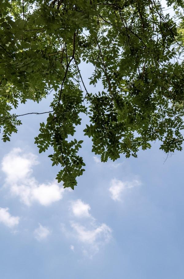 “你看这树冠多像把绿伞,把整个夏天的热都挡在外面了。”“80后”李先生带着女儿在树荫下纳凉,这株胸径107厘米的国槐枝繁叶茂,24米宽的冠幅如巨伞撑开。