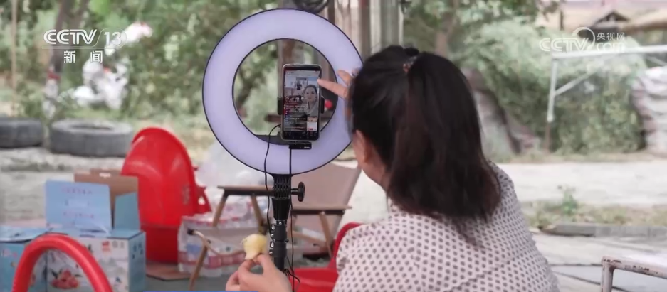 在四川绵阳,果农邓胜林举着刚摘下的鲜果正与网友互动。他有200多亩果园,之前因为山高路窄,邓胜林常常为销售发愁。当地政府修通了通往果园的路,建起了蓄水池和保鲜库。依托东西部协作的“村播”项目,来自浙江的挂职干部手把手教他直播卖货,首次直播,他就卖出了几百单。