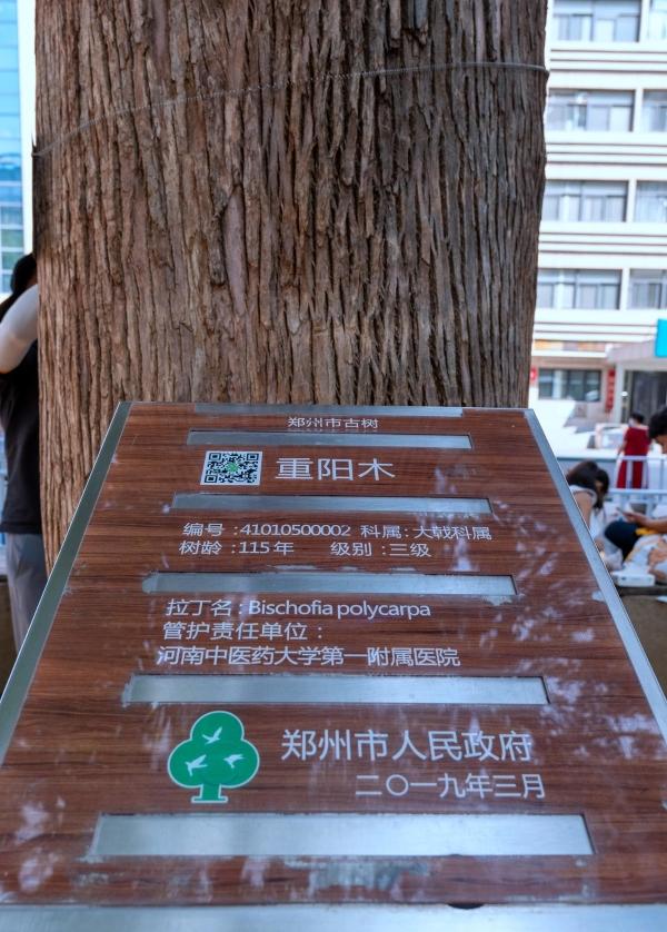 盛夏的午后,郑州市人民路被热浪包裹。然而,在一处街角,却聚集着一小片难得的清凉。打盹儿的老人、等候的患者、嬉戏的儿童在树影下短暂停驻。 这一切安宁的中心,是一棵伫立了121年的古树——长江以北最大的重阳木。老辈人讲“千年柘树,万年重阳”,都说这树寓意长寿,可它偏偏稳稳当当立在河南中医药大学第一附属医院里,是当年特意为了这份“长寿”寓意栽下的?还是风把种子吹到这儿,恰好结下的缘分?路过的人抬眼望它时,总忍不住在心里打个问号。