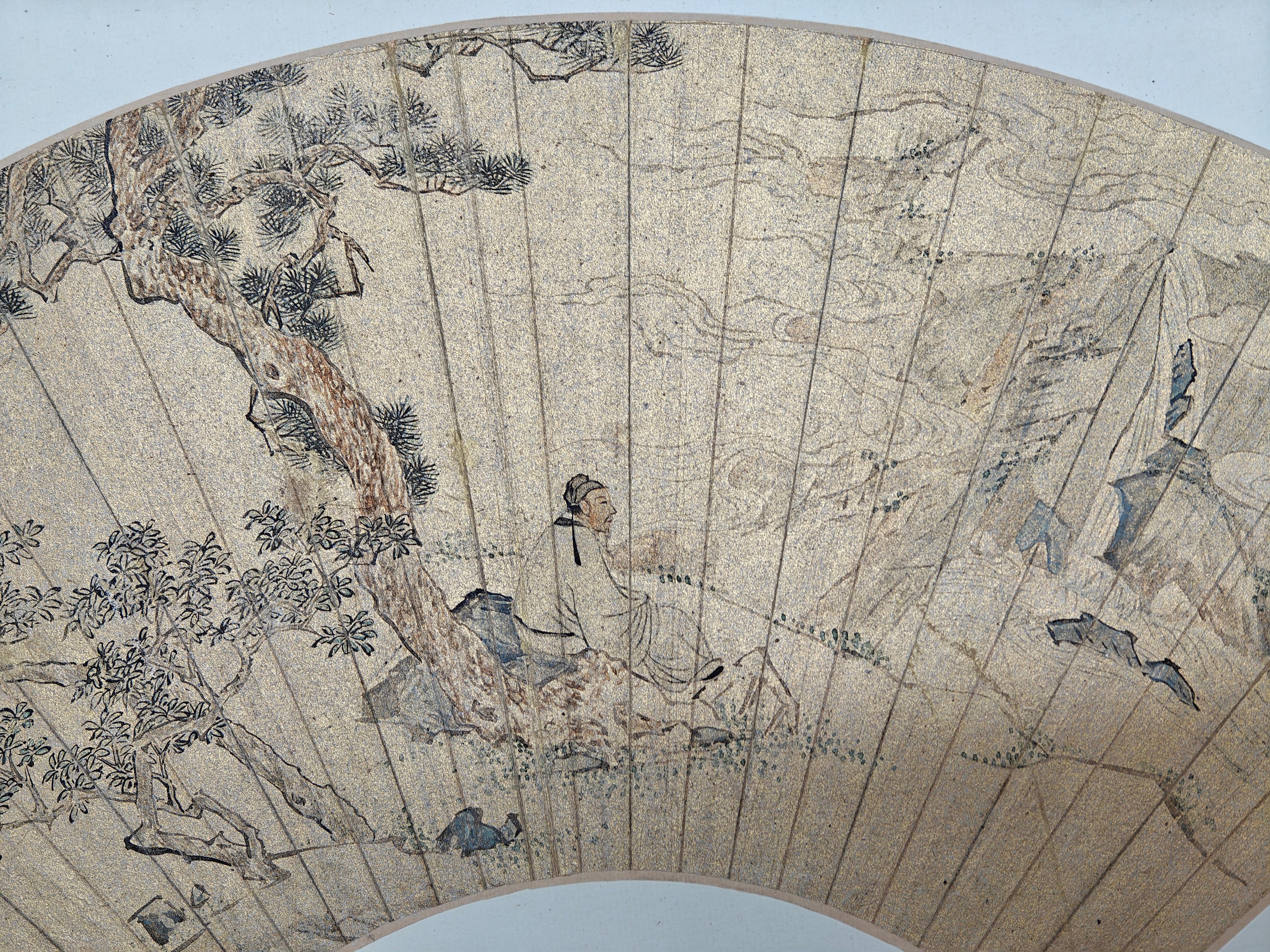△明 沈周(款)山水人物大册(之六 桐阴观鹤),天津博物馆藏。