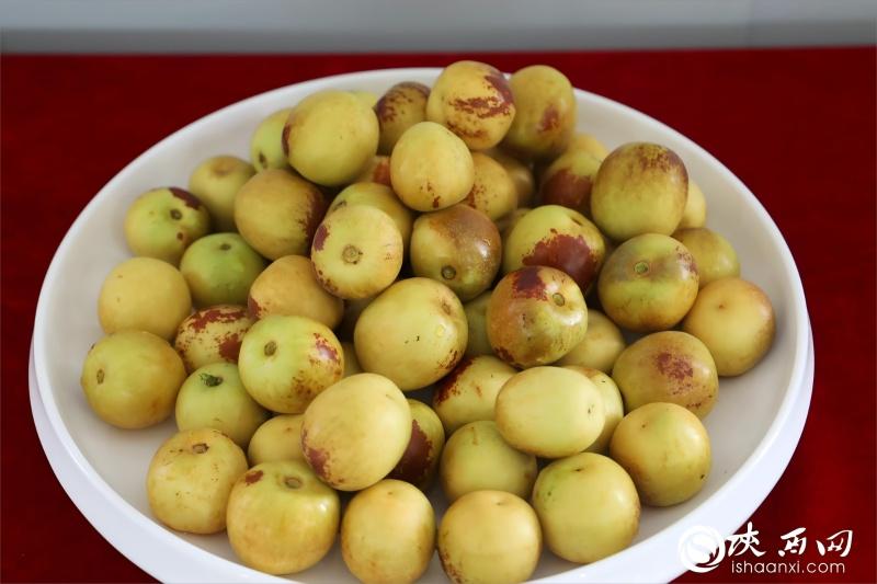 周爱英介绍说:“大荔冬枣具有四大特征,果个大,果实近圆形,平均单果重20克。果面平整光洁,果皮薄而酥脆,完熟期呈浅黄片状赭红色。肉细嫩,果肉乳白色,口感细嫩酥脆。味香甜。品质优势明显。”