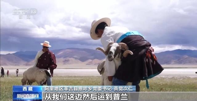 阿里地区革吉县擦咔乡党委书记 贡觉次仁:历史时期,我们这边采盐的湖称作章仓三湖。盐以绵羊作为交通工具,每只绵羊大概背20斤左右,从我们这边运到普兰、日喀则,到印度、尼泊尔等地,以物易物的方式进行交易。