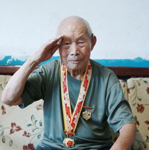 7月24日,记者在河南省驻马店市确山县三里河街道的一幢居民楼里,见到了96岁的抗日老兵臧海龙。老人向记者讲起自己参加抗日战争的经历。