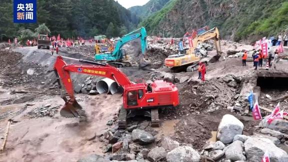 目前,挖掘机、装载机等大型装备开进受灾村庄,全力展开失联人员搜救工作。