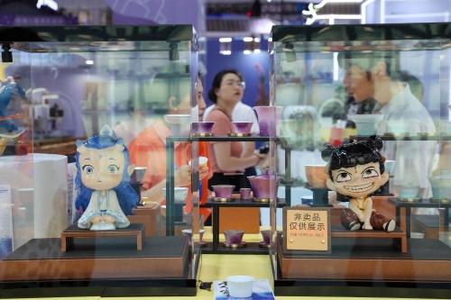 深圳,5月22日,文博会上展示的电影《哪吒》周边产品。新华社记者 梁旭 摄
