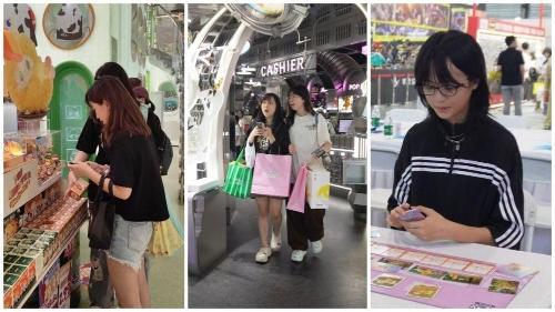 7月17日,韩国游客在位于上海市南京路步行街的一家潮玩店里购物。新华社记者 唐斯琦 摄