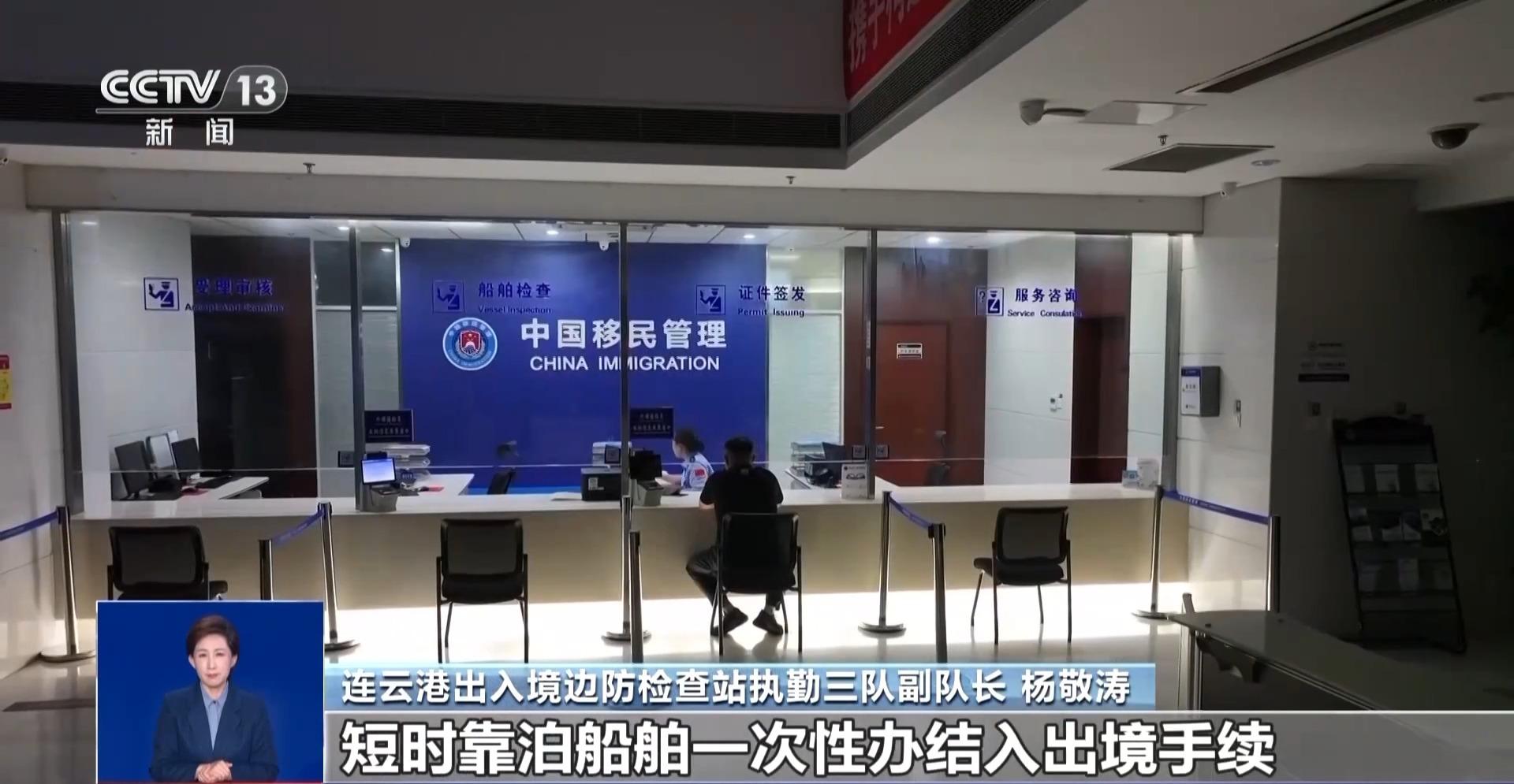 连云港出入境边防检查站执勤三队副队长 杨敬涛:我们实施船舶“7×24小时”随到随检、网上报检“零等待”“无纸化”申报、短时靠泊船舶一次性办结入出境手续,最大限度压缩船舶滞港时间。