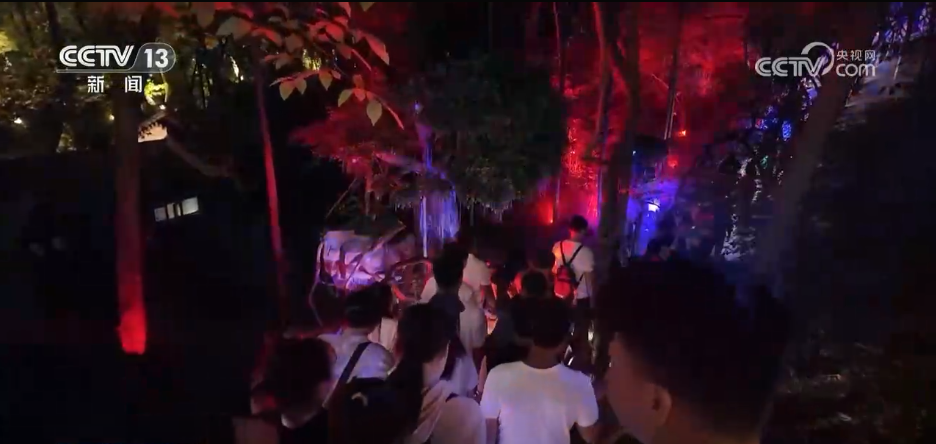 在八公山国家地质公园,不少游客选择到森林里避暑游玩,特别是到了晚上,景区通过光影秀打造了夜间森林的游览路线,还发放了15000余张儿童免费体验券,吸引游客到来。